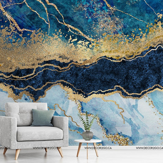 Big Blue Gold Wallpaper Mural