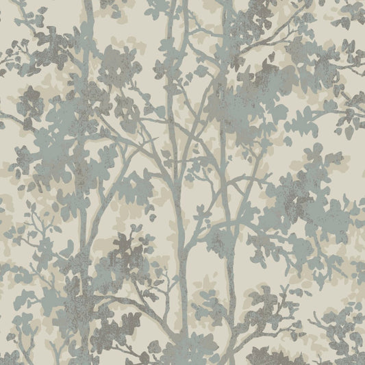 Cream & Silver Shimmering Foliage Wallpaper (57 SqFt)