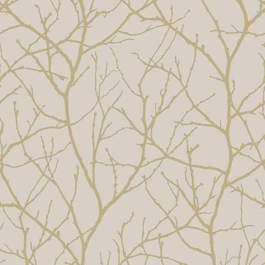 Beige & Gold Trees Silhouette Wallpaper (57 SqFt)