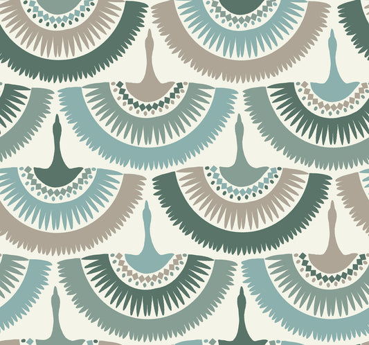 Feather and Fringe Wallpaper Green (60 SqFt)