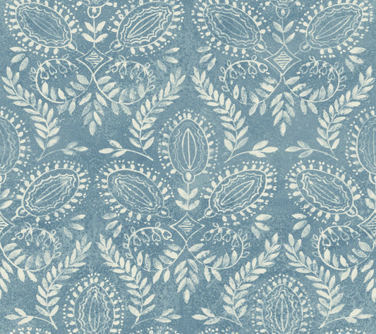Laurel Damask Wallpaper Blue (60 SqFt)