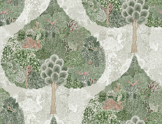 Mystic Forest Wallpaper Green/Coral (60 SqFt)