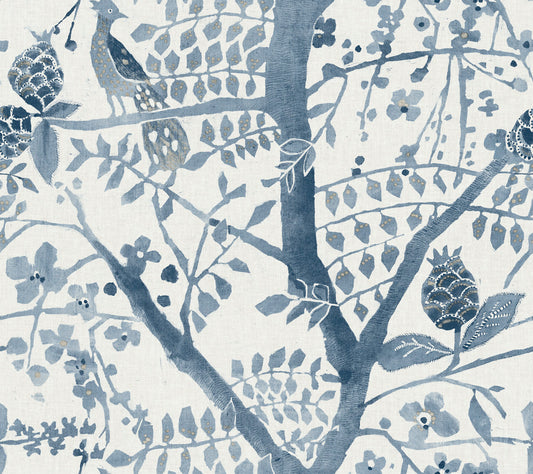 Peacock Block Print Wallpaper Blue (60 SqFt)