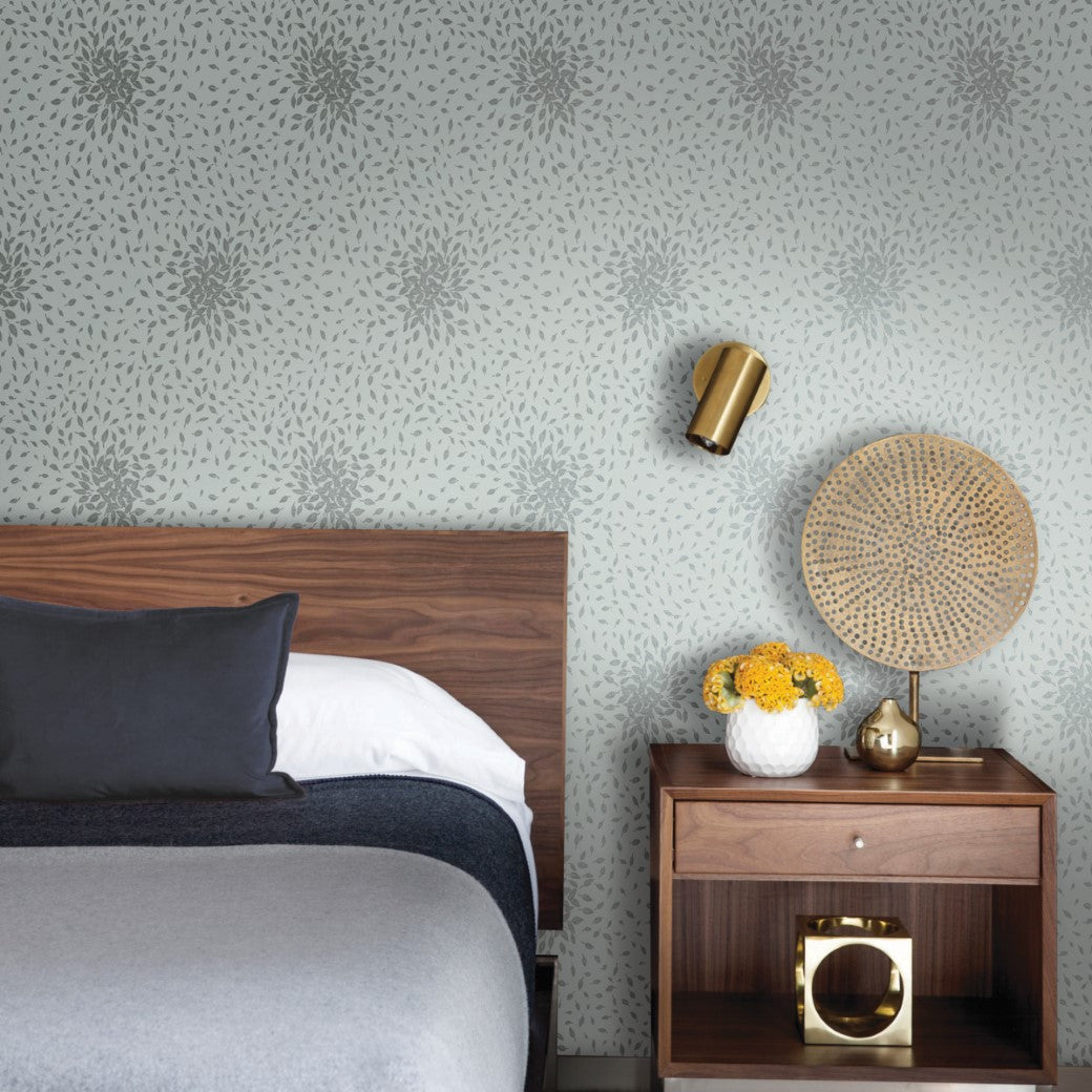 Spa & Silver Petite Leaves Wallpaper (60 SqFt)